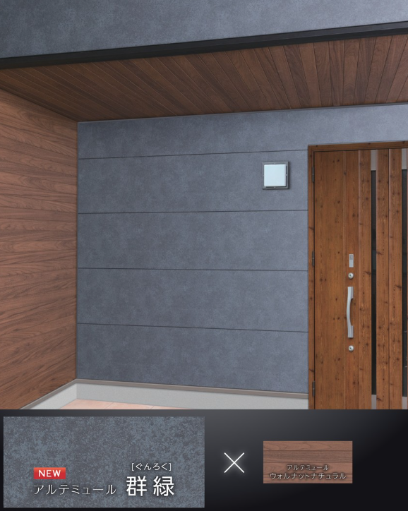 例えば、玄関ポーチ上の軒天を木目に